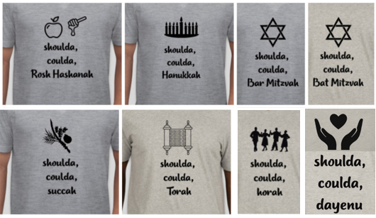 In an effort to memorialize the end of living life with the “shoulda, coulda, woulda” attitude, I have created a line of t-shirts to inspire people to truly live in the moment. The t-shirts celebrate many Jewish ritual moments. And, in Breaking Matzo’s inclusionary spirit, I have incorporated other faiths and spiritual practices.