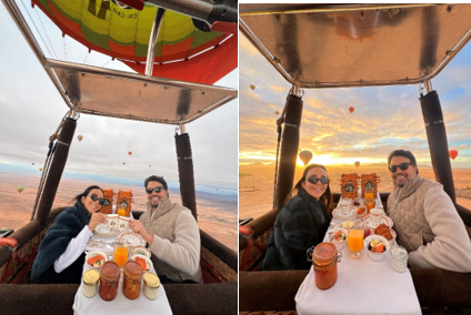 Joan and Andy enjoying coffee and croissants among the clouds without spilling