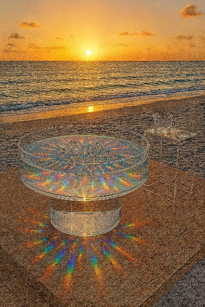 The act of striking the glass cube with a mallet invokes the breaking of the glass at a Jewish wedding. That ritual simultaneously remembers the destruction of the Temple and affirms the irrevocable bond between bride and groom. Here, breaking the glass transforms it into a prism. An object whose internal fractures allow light to radiate outward. Pain is not denied; it becomes the source of illumination. A shattered inner structure becomes an engine of beauty.
